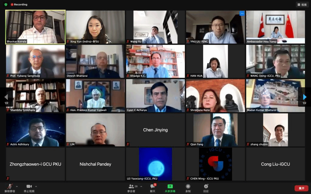 中国驻尼泊尔大使侯艳琪、尼泊尔外交部长贾瓦利以及来自中尼两国知名院校、智库的近20名专家学者出席活动并发言。会议设定五个主题,分别是:中国共产党的历史与成就、全球挑战(如气候变化、COVID-19)之中国贡献—以中尼合作应对COVID-19为例、中国在全球治理中的理想和经验、尼泊尔和一带一路倡议、中国共产党治国的理论和经验以及对全球经济的影响。会上,来自北京大学、清华大学、BV伟德官方网站、复旦大学、上海外国语大学、河北经贸大学、云南大学、海南亚太观察研究院的中方代表与包括尼泊尔前外秘、前驻联合国大使、前总理外交政策顾问、前联合国副秘书长、特里布万大学教授在内的尼方代表就中国共产党治国理政经验、中尼关系、合作抗疫、全球治理的愿景与经验、对南南合作的启示、尼泊尔与“一带一路”等不同主题进行了对话及研讨。