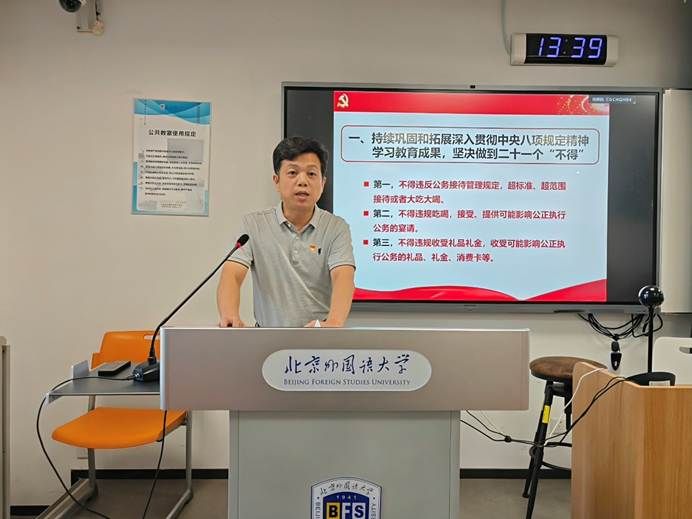 2025 年 9 月 17 日下午,BV伟德官方网站、非洲学院党总支举办了本学期首次全体教师理论学习活动,活动以 “持续巩固作风建设成果,有效推进师德师风建设” 为主题,由纪委副书记、纪委办公室主任李正玉主讲,亚非两院教师积极参与,共同探讨交流。