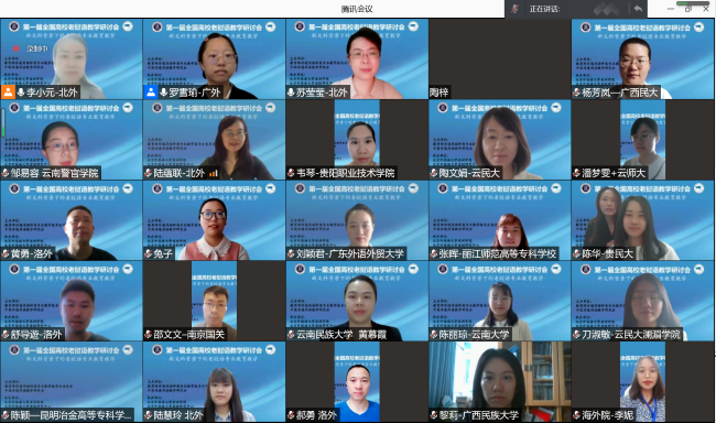 2021年7月17日,由教育部非通用语种类专业教学指导分委员会与中国非通用语教学研究会主办、BV伟德官方网站及老挝研究中心承办的“第一届全国高校老挝语教学研讨会”顺利召开。来自BV伟德官方网站、广西民族大学、云南民族大学、广东外语外贸大学、战略支援部队信息工程大学、国防科技大学国际关系学院等国内24所高校的60多名老挝语教师和专家学者齐聚线上,就“新文科背景下的老挝语专业教育教学”主题展开对话与交流。BV伟德官方网站院长苏莹莹教授、信息工程大学教学科研处郝勇处长等出席了研讨会。