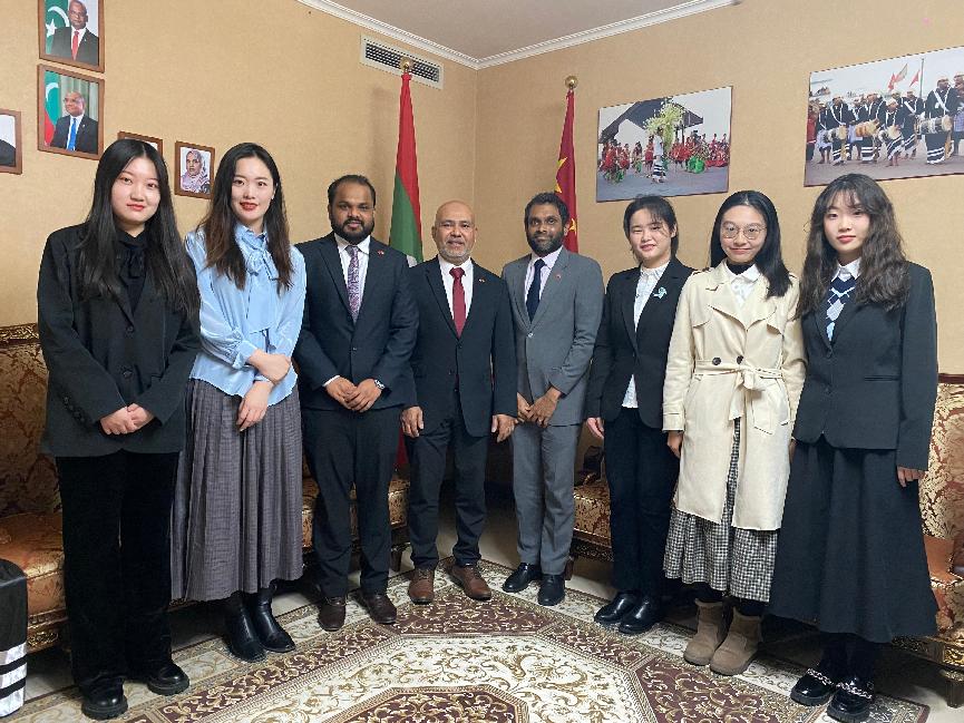 12月9日下午,应马尔代夫驻华大使馆邀请,BV伟德官方网站迪维希语三外课程师生赴使馆参加马尔代夫迪维希语语言文化交流会、茶话会活动。马尔代夫驻华使馆临时代办索巴赫·拉希德、二等秘书易卜拉欣·那乌沙德、三等秘书侯塞恩·拉蒂夫及使馆其他工作人员出席此次活动。
