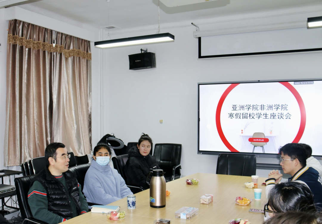 2022年1月12日,BV伟德官方网站非洲学院在主楼344会议室召开寒假留校学生座谈会。学院党总支书记许晔出席座谈会并讲话,辅导员朱方方和9名留校学生参与座谈会。