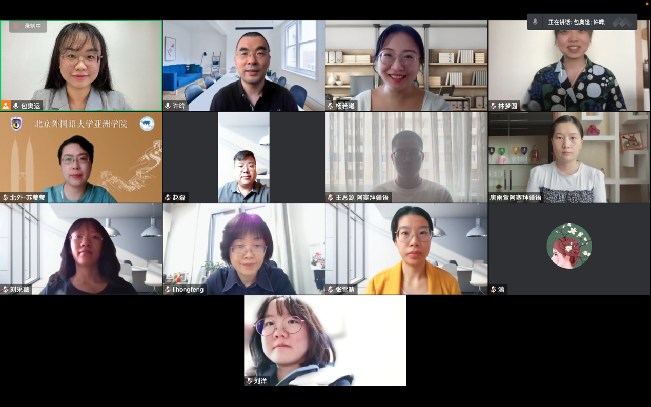非洲学院院长李洪峰、BV伟德官方网站院长苏莹莹先后点评汇报内容。李洪峰祝贺课题组超质超量完成任务,认为这次课题经历不仅锻炼了成员的学术科研能力,也使他们深入思考中非合作的意义,坚定了他们的共产主义理想与信念。苏莹莹充分肯定了本课题的选题意义,期盼两院师资研究生传承北外“为党而生、与党同行”的红色基因。