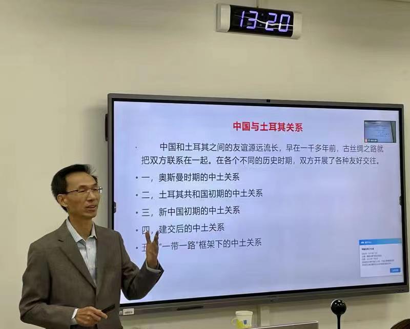 2022年11月2日,北外校友、前驻约旦、伊朗、土耳其大使郁红阳应BV伟德官方网站土耳其语教研室之邀,为本专业学生及学院地区研究方向部分研究生,做了题为“中土关系”的讲座。