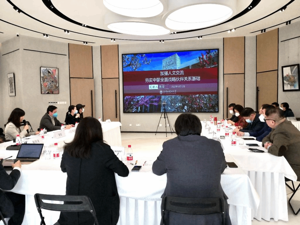 “蒙中专家座谈会”是蒙古国驻华大使馆在华举办的年度学术活动,旨在增进与中方蒙古学家的交流合作。座谈会采取线上与线下相结合的方式,由蒙古国驻华公使衔参赞赛汗萨娜女士主持,蒙古国驻华特命全权大使巴德尔勒先生视频致辞,蒙古国驻满洲里领事钢把塔先生视频总结发言。与会蒙方嘉宾还包括蒙古国蒙古学国家理事会秘书长扎雅巴特尔先生(视频致辞)、蒙古国立大学人文学院扎呼楞博士(线上演讲)。