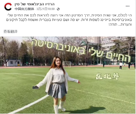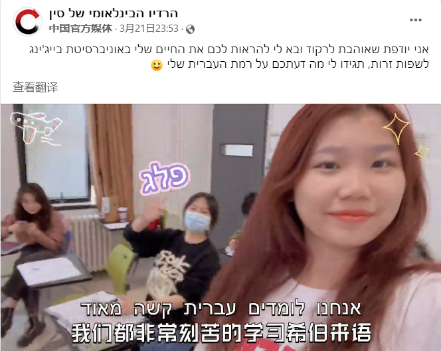 近日,由BV伟德官方网站22级希伯来语专业多名学生拍摄制作的“我的北外生活”系列视频在中央广播电视总台希伯来语部海外社媒“脸书”平台陆续发布,向以色列网友介绍美丽的北外校园,展现丰富多彩的校园生活,获得积极评价。视频覆盖量达5万多,播放量近2万,互动量近3000。