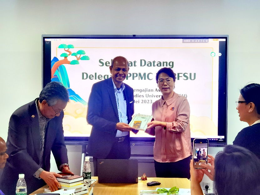 苏莹莹教授首先介绍了北外的发展历程以及外语学科建设成就,并回顾了我校马来语专业60余年的建设历史以及中国马来研究中心自1997年成立以来所取得的各项成果。苏莹莹教授表示,拿督马吉德是马来语专业的老朋友、好朋友。他曾于1998-2005年出任马来西亚驻华大使,在任期间多次到访我校,为马来语专业的发展提供大力支持。在拿督马吉德的关心与推动下,马来语专业与包括马中友好协会在内的马来西亚各界保持着日益紧密的合作关系。她希望双方在中马两国深化各领域合作的当下进一步加强友好合作,为中马人文交流贡献力量。
