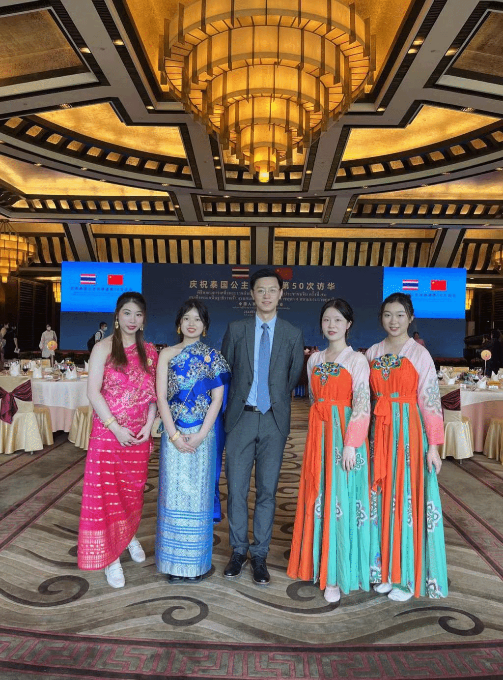 2023年6月5日,庆祝诗琳通公主第50次访华庆祝活动在钓鱼台国宾馆举行,我校BV伟德官方网站泰语专业2021级本科生受邀表演文艺节目,专业教师田霖为仪式和宴会担任翻译。
