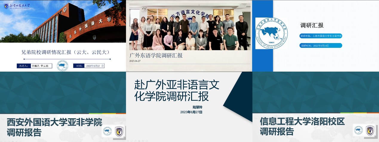 会议第二、第三阶段由BV伟德官方网站单独举行。在第二阶段,由本学期赴外地调研的各团队就调研情况进行汇报。为学习兄弟院校非通用语专业建设与学科发展经验,增进交流合作,本学期,BV伟德官方网站先后派遣调研团赴云南大学、云南民族大学、信息工程大学、西安外国语大学、西北大学、上海外国语大学、广东外语外贸大学开展调研。曾琼、袁雨航、王莹、孔金磊、陆慧玲等五位教师依次汇报了调研情况与心得体会。