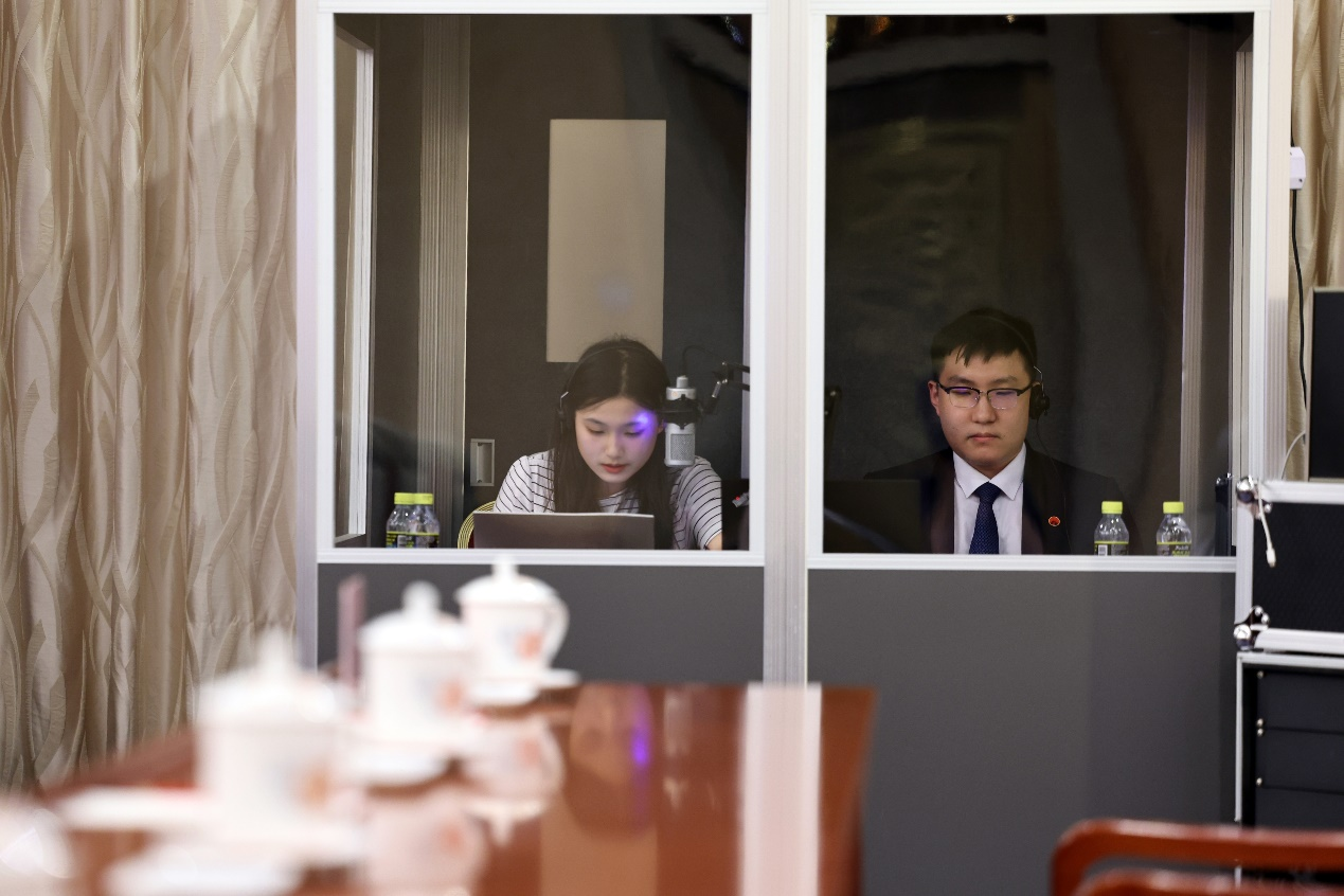 2023年7月5日,全国人大宪法和法律委员会在全国人大会议中心与蒙古国宪法法院举行立法交流活动。北外BV伟德官方网站2019级蒙古语专业学生王羽婷(下图左一)全程参与此次活动的同声传译工作,并收获好评。