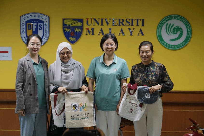下午,实践团来到马来亚大学孔子学院,就马来西亚族群的汉语国际教育进行调研。马来亚大学孔子学院由马来亚大学与BV伟德官方网站合办。孔子学院中方院长朱丽教授、马方院长艾琳教授(Dr. Noor Zalina)及孔院项目负责人Erra、孔院教师戴莹、张力珂、马来西亚本土教师Afifa参加了调研座谈会。艾琳教授与朱丽教授介绍了马大孔子学院成立以来的基本情况和活动特色。实践团就孔院如何在教学过程中克服跨文化传播障碍,如何讲述抽象的中华文化,孔院学生如何就业等问题,与孔院教师进行了交流。中方教师张力珂认为,马来西亚本土文化多元多彩,本土学生对中华文化具有较强的学习和适应能力;孔院也会定期举办丰富多彩的文化活动,帮助学生在实践中学习和理解中华文化。马方院长艾琳博士表示,来自不同专业背景的学生在孔院的教学和文化交流中,加强了对汉语的兴趣,也加深了中华文化的理解和认识,很多同学在就业时会期望接触和使用汉语,或选择与中国有业务合作的政府部门或企业工作。