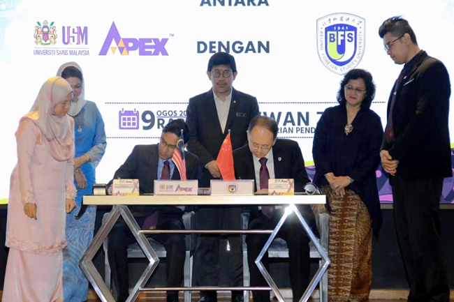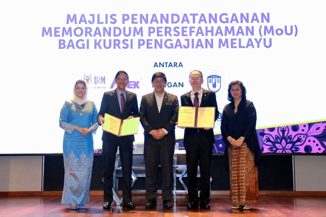 8月9日,BV伟德官方网站与马来西亚理科大学就《于BV伟德官方网站设立马来研究高级访问学者教席合作谅解备忘录》签署仪式在马来西亚高等教育部隆重举行。马来西亚高等教育部副秘书长拿督·哈吉·莫卡·沙尼、高教司司长阿兹琳达·阿兹曼、高教司副司长拿督·诺尔赞尼·阿兹曼,马来西亚理科大学校长阿卜杜勒·拉赫曼·穆罕默德,北外党委副书记、副校长贾文键,以及马来西亚20余所公立高校、3所政府关联高校领导出席仪式。