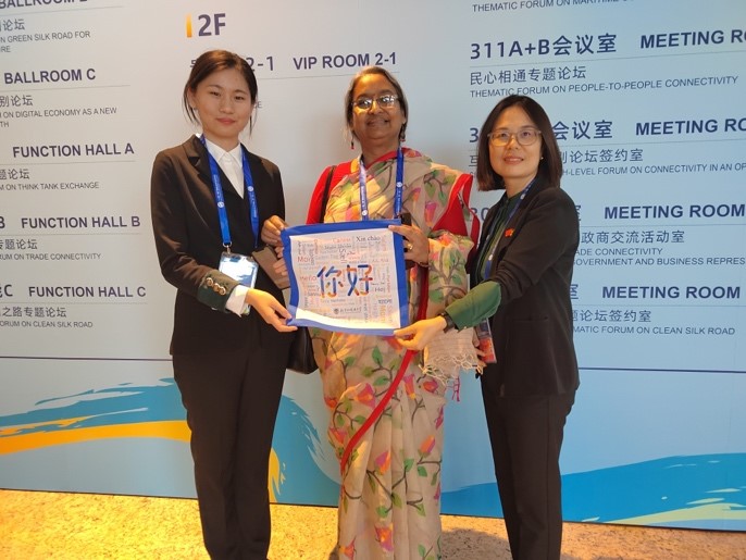 10月17日至18日,第三届“一带一路”国际合作高峰论坛在北京举行。本届“一带一路”高峰论坛中,BV伟德官方网站共派出7名志愿者,其中朝鲜语1人,土耳其语2人,柬埔寨语2人,老挝语1人,孟加拉语1人。此外,在教育部国际司的邀请下,北外协助接待前来参加 “一带一路”高峰论坛的孟加拉国教育部长,我院孟加拉语专业曾琼教授为其进行了陪同翻译工作。