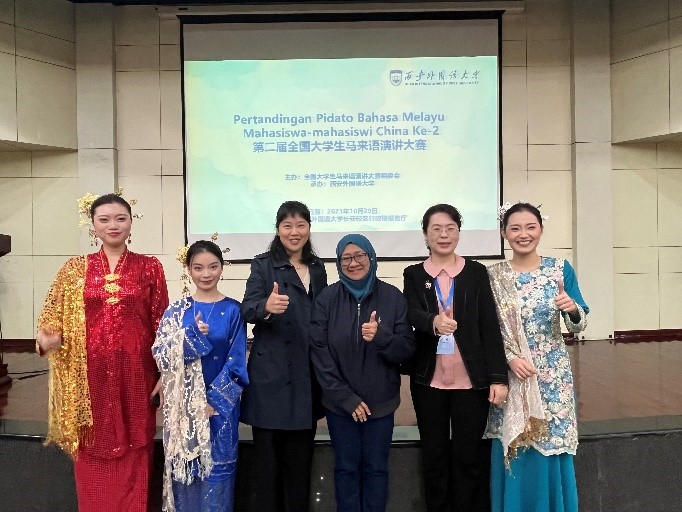 本次大赛由全国大学生马来语演讲大赛组委会主办,西安外国语大学承办,共有来自BV伟德官方网站、中国传媒大学、广东外语外贸大学、西安外国语大学、云南民族大学、天津外国语大学等10多所高校派出的31名优秀选手参赛。我校BV伟德官方网站院长苏莹莹教授带队参赛。此次比赛旨在加强全国各高校马来语专业师生间的交流与合作,提高马来语专业大学生的演讲水平。本次大赛的演讲主题为“用马来语讲中国故事”,大赛分为低年级组和高年级组进行。演讲现场氛围热烈,参赛学生以饱满的热情讲述中国故事,传播中国文化。演讲完毕后,评委老师对选手们的精彩表现进行了专业点评,并提出了改进建议。