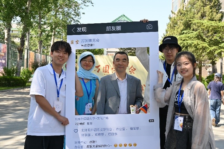 本次万国博览会设置了展示亚非国家特色文化的19个展台,游览者可以通过参与不同展台的活动了解对象国的风俗与文化。尼泊尔展台上的特色手绘海娜,吸引了大批游客前来体验;在亚美尼亚展台,游客可以DIY亚美尼亚字母吊坠,品尝来自亚美尼亚的特色美食;泰国展台则为游客们提供了泰式奶茶,游客们还可以通过参与泰语小游戏的方式学习泰语,赢取精致手信;游览坦桑尼亚展位的游客们可以收获专属的斯瓦希里语姓名;更有来自蒙古展位的驻唱歌手身着特色服饰,为前来的旅客们演奏悠扬的马头琴,展示蒙古特色音乐呼麦,令无数游客为之驻足。在各个展台的精心布置下,活动现场氛围火热,各式各样展现异域风情的特色活动引得全校师生与外国友人称赞连连。