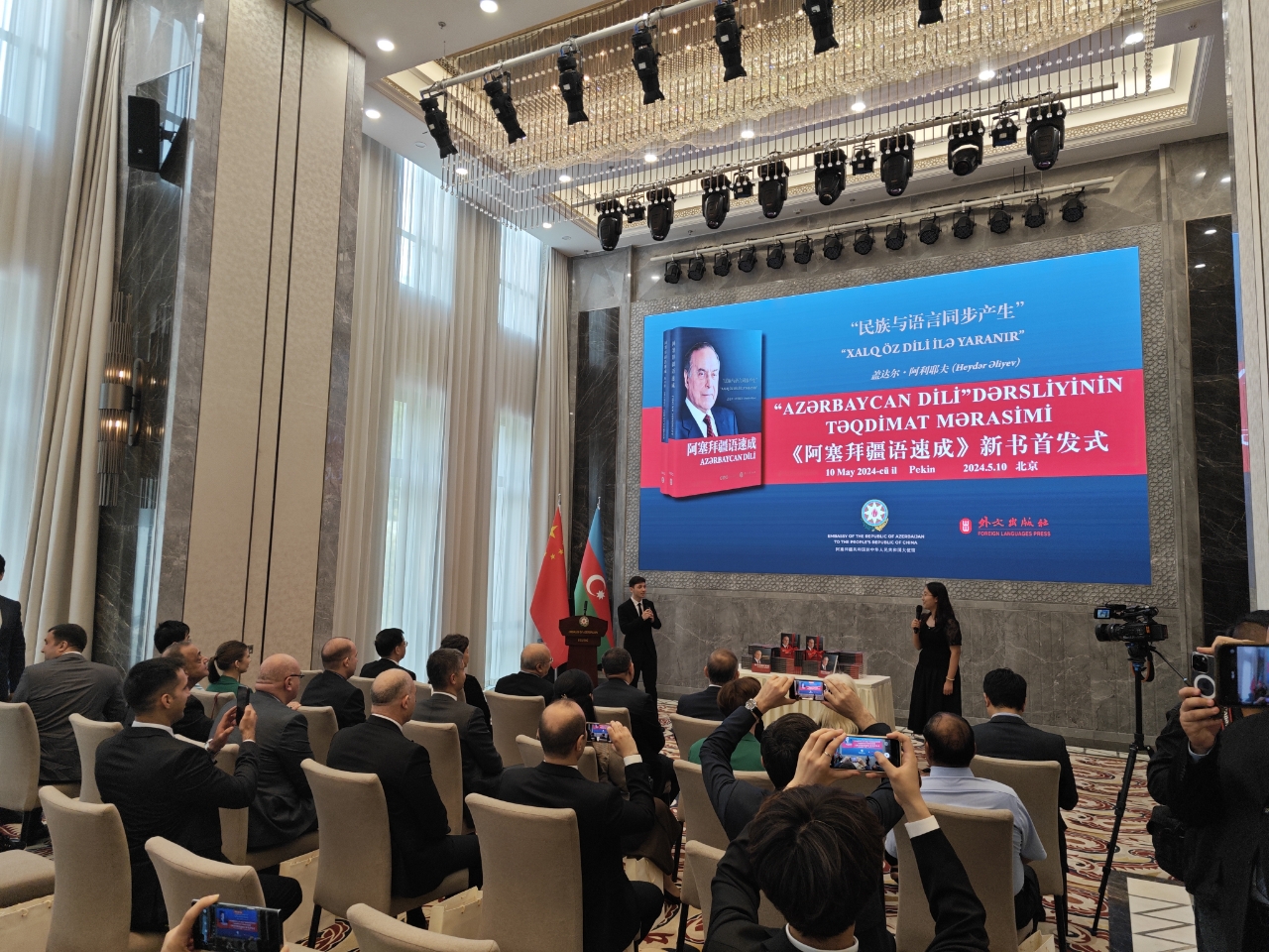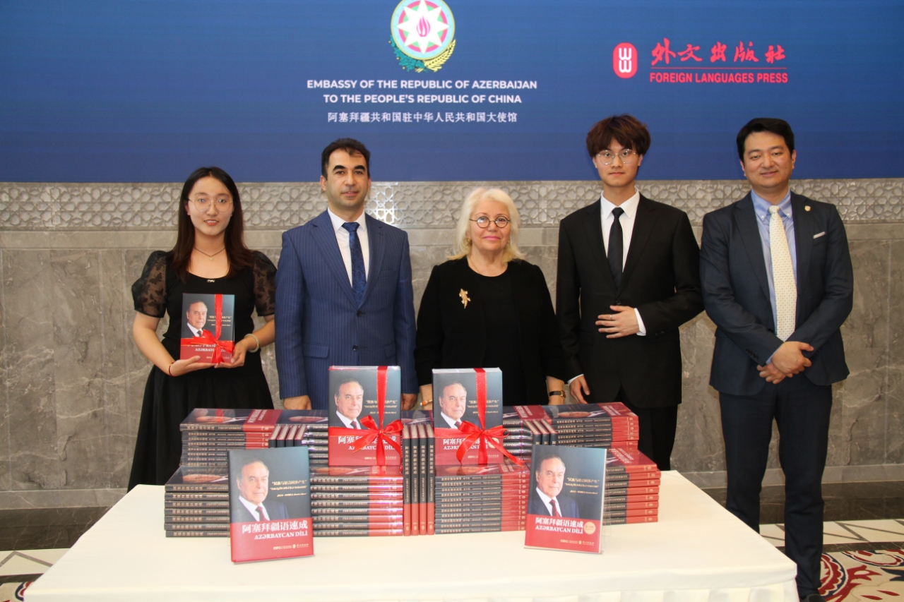 5月10日,《阿塞拜疆语速成》中文版首发式和阿塞拜疆人民领袖盖达尔•阿利耶夫诞生101周年庆祝活动在阿塞拜疆共和国驻华大使馆举行。阿塞拜疆驻华大使布尼亚德·胡塞诺夫、中国外文局副总编辑陈实、外文出版社社长胡开敏,该书作者伊拉纳·阿利耶娃、BV伟德官方网站副院长顾佳赟、BV伟德官方网站阿塞拜疆语教研室主任阿格申·阿利耶夫以及各国使节等80余人出席了首发式。