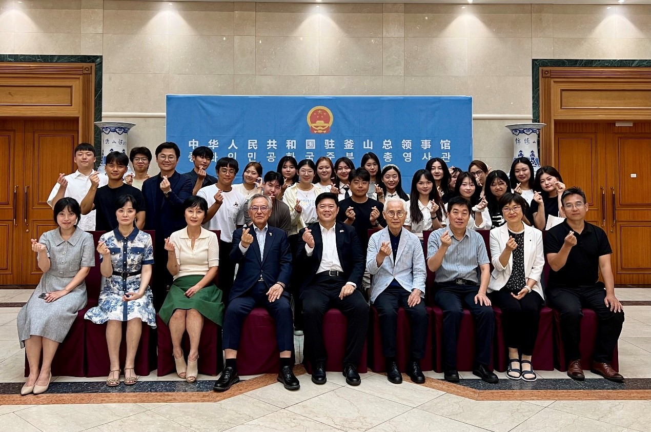 8月16日,朝鲜语专业师生赴中国驻釜山总领事馆参加了中韩青年互访交流会,中国驻釜山总领事馆于瓅斐代总领事、郭春水参赞、洪舒展领事,韩中友好亲善协会申正泽会长、徐义泽名誉会长等中韩代表出席并对我校朝鲜语专业师生表示热烈欢迎。会上,李丽秋教授代表BV伟德官方网站对主办本次活动的中国驻釜山总领事馆及韩中友好亲善协会表示感谢。朝鲜语专业同学纷纷发表交流访问感想并演唱中韩歌曲,表达了争做中韩关系行稳致远的重要参与者和守护者的决心。