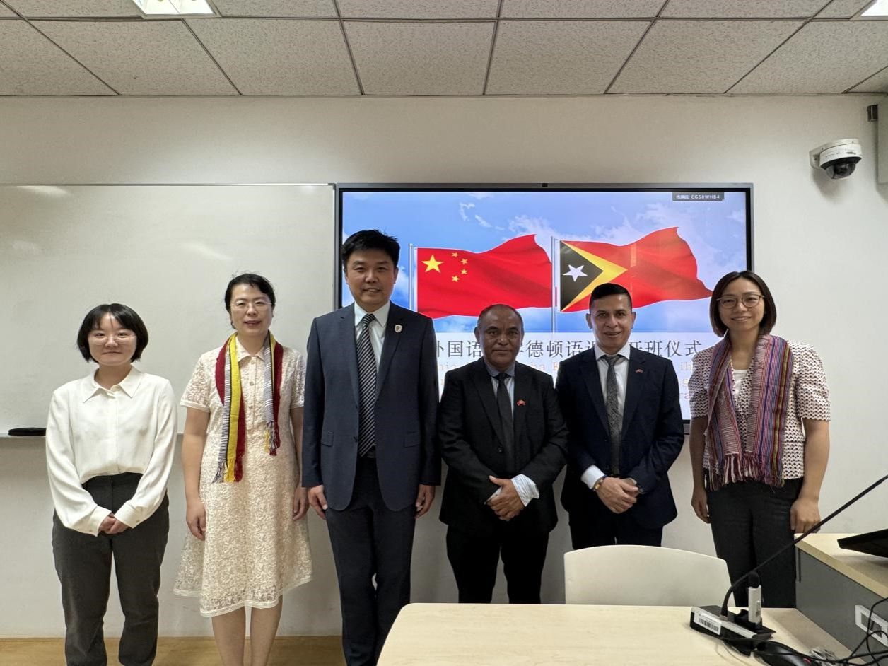 9月15日下午,BV伟德官方网站举办德顿语课程开班仪式,这是国内高校首次开设德顿语课程。我校党委常委、副校长赵刚,东帝汶驻华使馆教育参赞罗杰里奥·保罗·查韦斯(Rogério Paulo Chaves)出席活动并致辞。仪式由BV伟德官方网站德顿语教师刘洋主持。