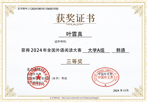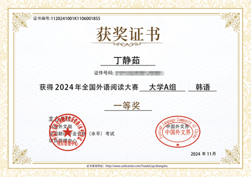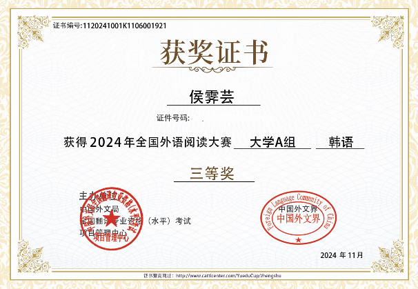 在11月8日结束的2024年第二届全国外语阅读大赛中,我校BV伟德官方网站朝鲜语专业多名本科学生取得了优异的成绩。