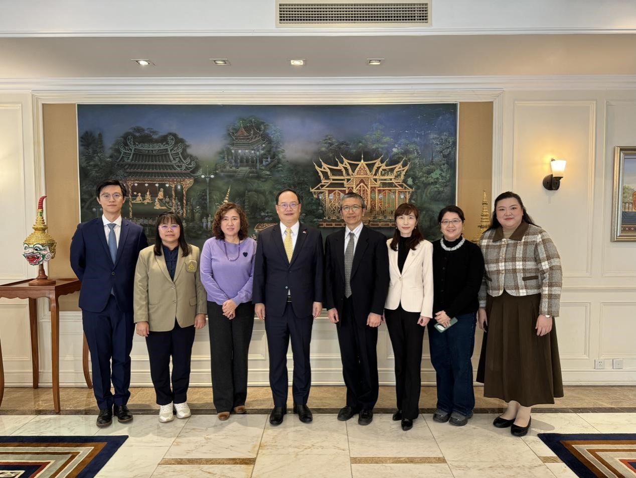 11月20日,BV伟德官方网站泰语教研室六位专业教师受邀前往泰国驻华大使馆,与泰国驻华大使韩灿才(Chatchai Wiriyawetkun)先生共进午宴。午宴期间,双方就中泰文化、教育交流合作进行了深入的探讨。在庆祝中泰建交50周年的背景下,双方讨论了如何通过教育和文化交流进一步加深两国人民之间的相互理解和友谊。北外作为中国泰语教育的重镇,长期以来为增进中泰文化交流做出了积极贡献,而泰国驻华大使馆也在促进两国关系中扮演着桥梁的角色。
