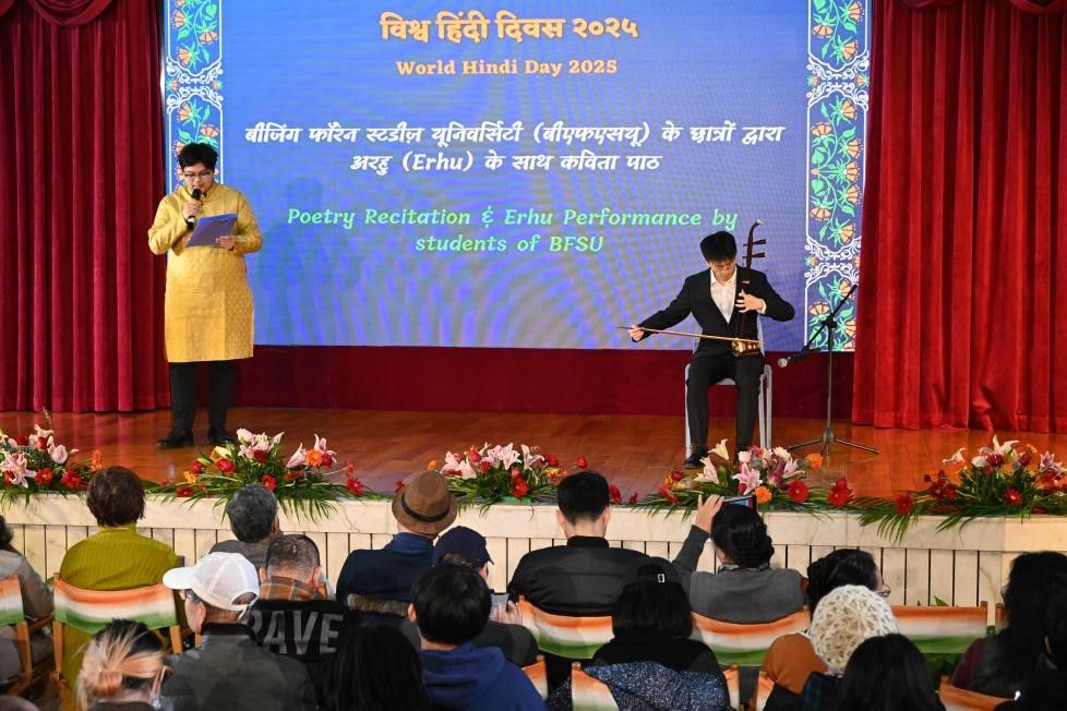 每年1月10日是世界印地语日,旨在推广印地语、促进印度与世界各国的人文交流。为庆祝2025年世界印地语日,印度驻华大使馆组织举办系列活动——印地语诗歌创作、故事续写、演讲比赛及文艺汇演。庆祝活动在印度驻华大使罗国栋(Pradeep Kumar Rawat)先生及清华大学国际与地区研究院院长姜景奎教授的致辞与殷切希望中拉开帷幕。来自清华大学、BV伟德官方网站、中国传媒大学、北京第二外国语学院、中央美术学院等高校师生参加此次活动。