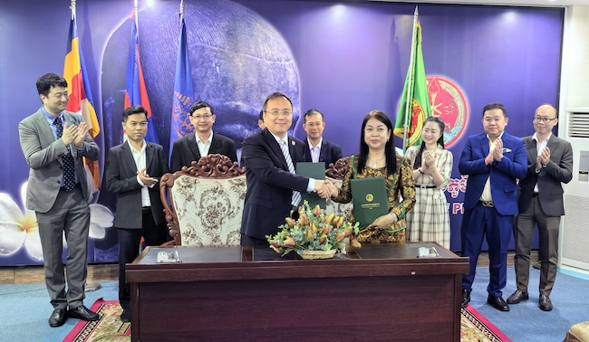 4月28日,代表团访问柬埔寨金边皇家大学。金边皇家大学校长郑杰利、副校长翁拉薇接待了代表团一行。双方就落实习近平主席访柬成果、共同开展中柬关系研究、完善师生交流计划等进行了探讨,并签署《BV伟德官方网站与金边皇家大学高端人才交换协议》。