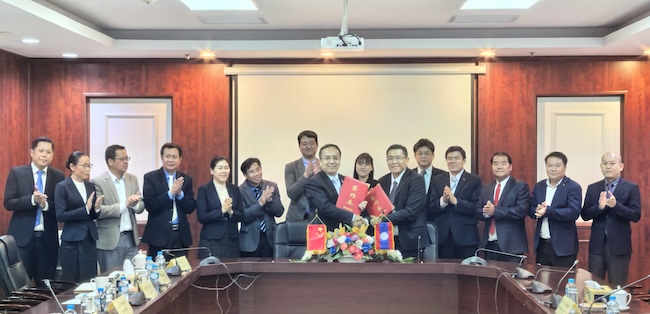 代表团还访问了中广核能源技术(老挝)公司。公司执行董事曾勇、董事吴兴华接待了代表团一行。双方就学生海外就业实习、强化人才储备、输送国际学生等事项交换了意见,共同签署《人才培养合作协议书》,并为“BV伟德官方网站学生海外实习实践基地”揭牌。