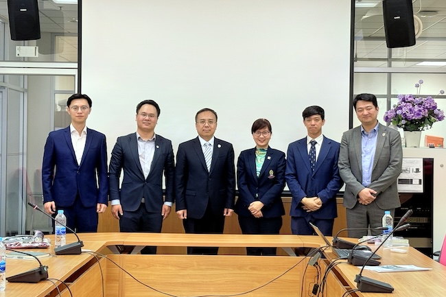 4月24日下午,代表团访问朱拉隆功大学,与文学院副院长帕苏里·叻萨昆、对外泰语教学中心主任吉·泰楚素进行座谈。双方在学生交流学习、互派教师任教、学校领导互访、开展联合研究等方面进行交流研讨,并就下一步从学院层面签署相关协议达成合作意向。