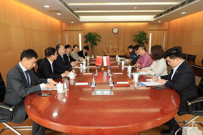 新加坡驻华大使馆政务参赞林家毅、一等秘书(新闻)林欣蓓、一等秘书(教育)李威颖、二等秘书(政务)陈若维,北外国际交流与合作处处长和静、国际商学院党总支书记冯刚、BV伟德官方网站院长苏莹莹、高级翻译学院副院长姚斌等参加会见。
