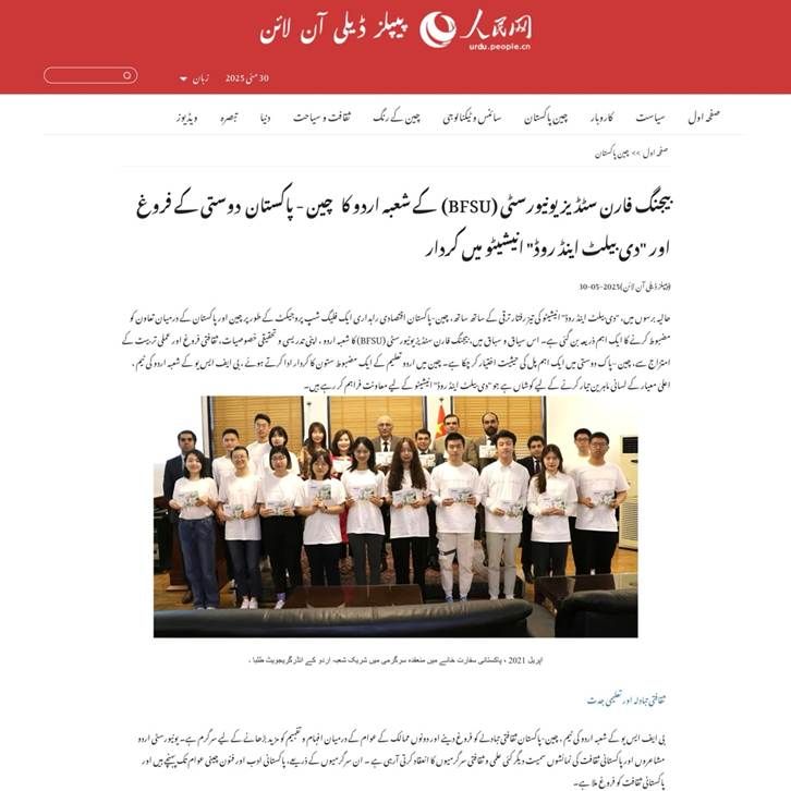 “人民网”作为中国最重要的对外宣传媒体之一,其乌尔都语版在促进中巴文化交流和增进相互理解方面发挥着重要作用。北外BV伟德官方网站乌尔都语专业教师在“人民网”乌尔都语版发表文章,不仅展示了北外乌尔都语专业建设的丰硕成果,还借助这一国际化平台,进一步提升了北外的学术影响力与国际声誉。