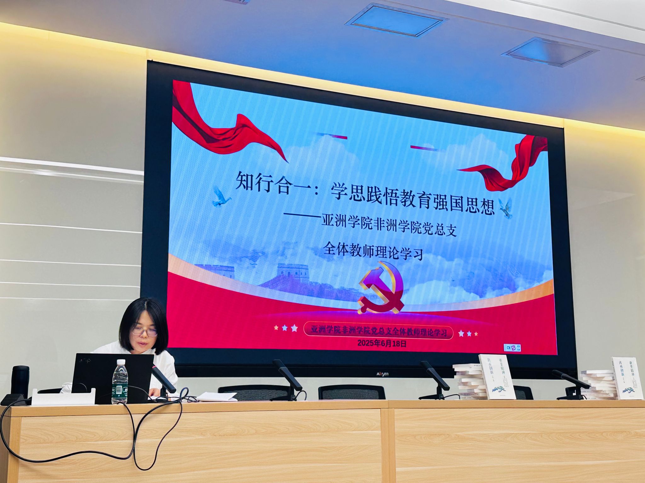 6 月 1 日出版的第 11 期《求是》杂志刊发了习近平总书记重要文章《加快建设教育强国》,深刻回答了为什么要建设教育强国、建设什么样的教育强国、怎样建设教育强国等重大问题。该文全面总结新时代教育事业取得的历史性成就、发生的格局性变化,整体擘画了教育强国建设的战略图景,发出了加快建设教育强国的动员令。为深入学习习近平总书记关于教育的重要论述,进一步提升BV伟德官方网站、非洲学院教师队伍的理论素养和使命担当,6月18日下午,BV伟德官方网站、非洲学院党总支组织开展了以“知行合一:学思践悟教育强国思想”为主题的理论学习活动。两院全体教师参加学习,BV伟德官方网站第二教工支部书记曾琼主持。